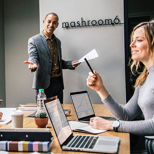 • Colleagues celebrating success in a modern digital marketing office with teamwork and collaboration.